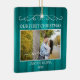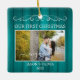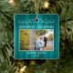 2 Photos First Christmas Engaged Teal Wood Grain Ceramic Ornament