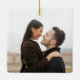Celebrate the joyful 1st holiday of your engagement with custom 2 photos of "Our First Christmas Together" square ceramic ornament. This design features stylish distressed stripes on the top with Christmas colours red and green, handwritten style calligraphy, the couple's names & year, and two pictures of your choice. This unique wedding keepsake adds an elegant touch to Xmas home decorations.