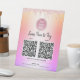 Make it easy for your customers to use contactless pay for your goods and services with this elegant, sophisticated, simple, and modern 2 custom QR codes pedestal sign. Your custom logo, calligraphy script typography and blush pink rose gold glitter drips overlay a pastel rainbow ombre faux foil metallic background. Personalise with your logo branding, 2 personal QR codes, and contact info with the customisable templates. Available in 4 sizes: 4”x6”, 6”x8”, 8”x10”, and 10”x12”. Makes a chic, professional, and stylish statement that will help your customers pay safely.
