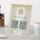 Make it easy for your customers to use contactless pay for your goods and services with this elegant, sophisticated, simple, and modern 2 custom QR codes pedestal sign. Your custom logo, calligraphy script typography and gold glitter overlay a faux metallic champagne gold ombre background. Personalise with your logo branding, 2 personal QR codes, and contact info with the customisable templates. Available in 4 sizes: 4”x6”, 6”x8”, 8”x10”, and 10”x12”. Makes a chic, professional, and stylish statement that will help your customers pay safely.