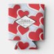 happy Valentine's Day can coolers with a repeating pattern of 2 different sized red hearts each heart surrounded by a white border. A diamond shaped frame layered over top with your text inside.