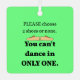 If you're a dance teacher, dance team coach, competition judge, or a pro dancer who has had it UP TO HERE with dancers dancing with one shoe, this ornament is FOR YOU! Design shows a COMPLETE PAIR of jazz shoes - for BIG EMPHASIS! Christmas green background. Simply customise the back with your dance studio's (or dance team's) name (up to 5 lines).