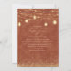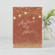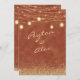 Modern, elegant, and chic terracotta and gold 2-sided wedding invitation with gold glitter and string lights. The front of the card is personalised with the names of the bride and groom, and the back has the invitation for your guests.