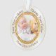 2 Sided Personalised Photo Ornaments with Your 1 or 2 Photos and Text. Off white custom printed frame with really pretty Faux Gold Coloured Glitter design. Great gifts for gramma, grandpa, gifts for mimi and pops and new parents.