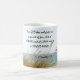 Inspirational quote custom coffee mug depicts a beautiful ocean beach with sea grass on the dune and features Bible Verse 2 Timothy 1:7, "For GOD has not given us a spirit of fear, but of POWER and of LOVE and of a SOUND MIND."_
