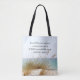 Inspirational quote custom tote bag depicts a beautiful ocean beach with sea grass on the dune and features Bible Verse 2 Timothy 1:7, "For GOD has not given us a spirit of fear, but of POWER and of LOVE and of a SOUND MIND."