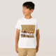100% cotton so perfect for summer, It is a nicely designed t-shirt, the fabric is soft and the seams finished well, the body of the t shirt has no side seams. I bought a medium size for my two grandsons, aged 9 and 8 it will be slightly big on them but I would rather that than too small
