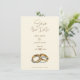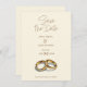 Announce your special day with timeless elegance using these 2 Gold Wedding Rings Save the Date Cards. This beautifully minimalist design features two gold wedding rings, symbolising enduring love, commitment, and the joyful journey ahead. The card’s clean layout and simple yet sophisticated illustration evoke a sense of romance and anticipation, setting a graceful tone for your forthcoming celebration.