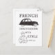 Introducing our captivating white postcard, a homage to "French Engineering with style since 1948". Delight in the timeless elegance of a serif font as it accompanies an illustration featuring the iconic 2CV Deux Chevaux and a dapper Frenchman adorned with a barrette hat, all in a vintage-inspired dark brown hue.