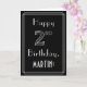 The front of this luxurious 1920s-1930s art deco inspired birthday themed greeting card design features the message “Happy 2nd Birthday,” along with a customisable recipient name. The number “2nd” on the front has a fancy lined look, and there is also a multi-line border. The inside has an editable birthday greeting message, or could perhaps be cleared and left blank if a message is to be written by hand instead. A stylish, editable birthday greeting card like this might be sent in celebration of somebody’s second birthday. [~Z0000640]