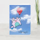 Cute kitty illustration with red balloon floating in clouds for 2nd birthday.
