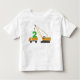2nd Birthday Construction Tee; featuring a crane dropping the number 2 into the back of a dump truck.
