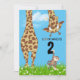 Cute giraffe in the grass with a monkey and daisies for 2nd birthday invite.