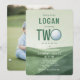 Celebrate a hole-in-one milestone with this modern green golf-themed birthday design, created especially for stylish two-year-olds. Featuring layered sage and deep green tones with a clean, minimal layout, this design pairs playful charm with a polished aesthetic. A bold personalized name takes center stage, with “TWO” cleverly styled alongside a golf ball detail for a fun, sporty twist. Perfect for golf-loving families or little ones already on par for greatness, this design sets the tone for a relaxed yet elevated party. The front highlights your event details with clarity and style, while the back includes a customizable photo template—ideal for showcasing your little one’s sweetest milestone moment. Easily customize the name, date, time, and location to match your event. Ideal for backyard gatherings, country club celebrations, or golf-inspired parties, this invitation brings a fresh, modern edge to a classic theme.