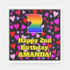 This fun and joyful birthday themed paper napkin design features a large number “2” having a rainbow spectrum gradient inspired pattern. It also features the message “Happy 2nd Birthday,”, and a custom name. The background features a pattern of pink, purple, and red heart shapes. Fun, upbeat paper napkins like this might be fun to use at a birthday celebration being held to honour somebody’s second birthday. [~Z0000550]