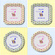 A square shaped birthday plate for a two year old, which co-ordinates with the round version. All items of text can be personalised: Name, caption, greeting. The design features a smiling monkey with a bright pink balloon which has the figure 2 on it. A further pattern of monkeys on a cream background decorates the edge of the plate.