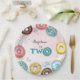 The 2nd birthday paper plate features beautiful watercolor illustrations of sweet and delicious doughnuts.