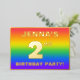 The front of this upbeat second birthday celebration/party foil invitation card design features a customisable name, a large number “2nd”, the message “BIRTHDAY PARTY!”, and a border. The background of the front features an exciting, multicolored, rainbow spectrum inspired gradient pattern. The back features personalised details about the event, such as the date, time, location, and any other information that may be useful. Personalised invitations like these might be a fun way to invite attendees to a birthday party/gathering being held to honour somebody’s 2nd birthday. [~Z0000599]
