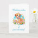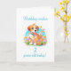 2nd birthday card for a child who loves his puppy dog. A cute puppy smiling to say happy 2nd birthday. A brown puppy with flowers and butterflies sending birthday wishes.