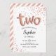 2nd Birthday Invitation for girl. Feminine white, rose gold design with faux glitter confetti. Features stripes and trendy balloons letters two. Perfect for an elegant second birthday party. Message me if you need further customization.