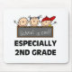 Three stick figure kids with big smiles hold a writing board that reads "School is Cool!" and black text reads "Especially 2nd Grade" on 2nd grade School is Cool T-shirts, mugs, buttons, magnets, stickers, cards, and other items perfect for kids who are in second grade and second grade teachers!