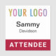 Personalise our square attendee badge with your logo, attendee name, or other custom text. Available with a safety pin or a magnetic fastener (do not use with pacemakers). The default backing is the pin back so if you prefer the magnetic, be sure to make the selection before checkout. Designed in dark red and other colours (all colours are customisable). The dimensions are 2 inch x 2 inch. No minimum order quantity and no setup fee.