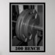 A black and white poster, with 300 pounds on the bar. It has a black and grey border, with the phrase "300 BENCH" written on it. A must have poster for those strong enough to bench press 300 pounds!