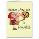 30th birthday T-shirts, mugs, cards, stickers, tote bags, keychains, 30th birthday buttons, magnets, and other 30th birthday apparel and gifts with a cartoon teacher and text that reads "Repeat after me...30 is beautiful!".