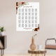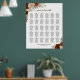 This beautiful 30 table autumn floral wedding seating chart includes table assignments for 300 guests with 10 seats per table. The rustic boho chic design features hand painted watercolor roses and garden foliage in shades of rust orange, burnt umber, and coral peach. The script calligraphy title reads "please find your table" and there is space for the names of the couple and wedding date at the bottom. Wonderful way to add beauty and style to your wedding reception while making it easy for your guests to find their tables.