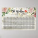 30+ Tables Wedding Seating Chart Poster Templates - Vintage Watercolor Pink Flowers and Elegant String Lights on Rustic Light White Wash Soft Wood Texture Background.