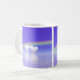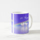 Coffee mug with my simple design of a rainbow and two pearl hearts floating on the water with text that says "30 Years".