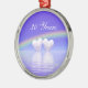 Hanging ornament with my artwork for 30th anniversaries of 2 pearl hearts floating on the water under a rainbow with customisable text.