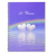 Notebook with my artwork of two pearl hearts floating on the water under a rainbow. Customisable text says "30 Years".