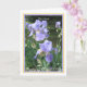 The image on the front shows two beautiful purple mauve irises in a field of irises in bud.