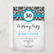 30th Birthday - Aqua Blue Black White Damask Invitation