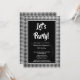 A modern black and white 30th birthday party invitation featuring a bold black and white diamond chequered border.
