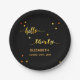 30th birthday black gold hello 30 script name paper plate
