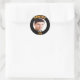 A sticker for a 30th birthday party for guys. Template for your photo. Black background and the text: Happy 30. The text is written with a trendy faux gold balloon script.