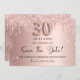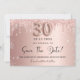 A girly and trendy Save the Date card for a 30th birthday party. Rose gold gradient background decorated with rose gold and faux silver glitter drips and dust. Personalise and add a date and name/text. The text: Save the Date is written with a large trendy hand lettered style script. Number 30 with a balloon style font.