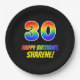 30th Birthday: Bold, Fun, Simple, Rainbow 30 Paper Plate