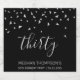Help her celebrate her 30th birthday in style with this simple but elegant design, featuring faux silver triangular confetti sifting down on the word "thirty" in light grey handwriting font on a black background. Personalise it with the name of the honoree in light grey sans serif font, along with the occasion and date below in smaller light grey type.