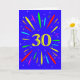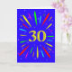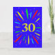 An explosive 30th birthday card! What a wonderful way to send birthday greetings. The number 30 in bright yellow with an explosion of bright colours and stars.