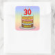 30th Birthday: Fun Cake and Candles + Custom Name Square Sticker