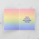 The front of this upbeat and fun birthday-themed greeting card design features the number “30“ with a vibrant multicolored rainbow spectrum inspired gradient pattern, along with the message “HAPPY 30th BIRTHDAY,” and a custom recipient name. Surrounding the rainbow-patterned number on the front are some photos that can be personalised, perhaps with photos of the recipient, the recipient’s family and friends, or the sender(s) of the card. There is also a multicolored rainbow spectrum inspired background gradient pattern behind the personalised message. The inside features an editable birthday greeting message, or could perhaps be cleared and left blank if a message is to be written by hand instead. A fun, customised birthday greeting card like this might be sent in celebration of somebody’s thirtieth birthday. (Photography © Storytree Studios, Stanford, CA.) [~Z0000662]