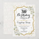 Elegant 30th Birthday Invitation. Stylish design in white and gold. Features white roses, damask pattern and faux glitter confetti. Perfect for a glam all white birthday celebration. Can be customised to show any age. Message me if you need further customisation.