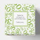 The background design Is a green and white number pattern with the milestone number 30 repeated in varied sizes and angles in an all-over print pattern. There is a white square on the top and a green band on the front for your text. Use the text templates to add your own words, name, initial, or monogram.