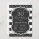30th Birthday Invitation. Black and Silver Glitter Invitation