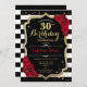 Elegant black white red design with faux glitter. Black and white stripes with red roses. Perfect for an elegant birthday party.