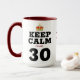 A fun birthday mug based on the "Keep Calm and Carry On" idea . 30th birthday celebration milestone gift. Easy to add your personalized message opposite the handle to make this "Keep Calm" Mug special.