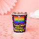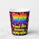 This colourful and cheerful birthday paper cup design features a large number “30” having a rainbow spectrum gradient inspired pattern. It also features the message “Happy 30th Birthday,”, and a personalised name. The background features a pattern of pink, purple, and red heart shapes. Loving, fun paper cups like this might be fun to use at a birthday party/celebration being held to honour somebody’s 30th birthday. [~Z0000548]